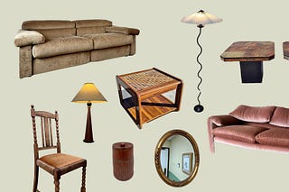 a vintage velvet maralunga, antique dining chairs, 1970s side tables, & more!